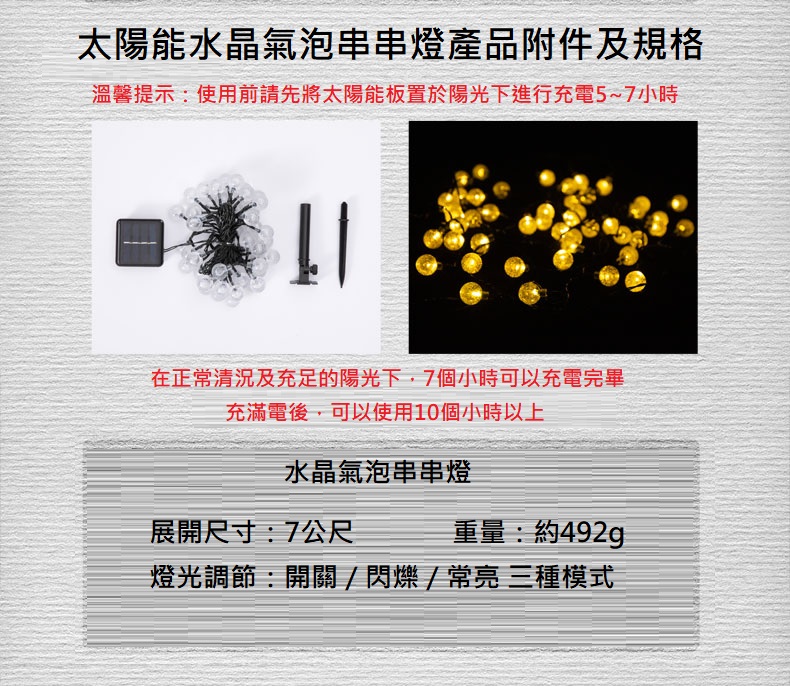 品名: 太陽能水晶氣泡串串燈(7米50燈)